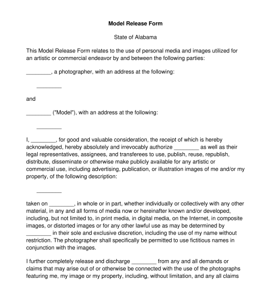 Photo studios film making companies producers modelling agencies and other companies in the media industry utilize release forms such as photo release forms and video release forms among others to transfer all rights and claims on the material whether it is a video photo or film to the producer. A model release form is important to protect photographers from liability and licensing claims that may arise down the road. If you are planning to take pictures to publish on a website in a publication or on any other type of materials that might be distributed its essential to get signed photography release forms that grant you permission to publish likenesses of the people and objects in your photos.